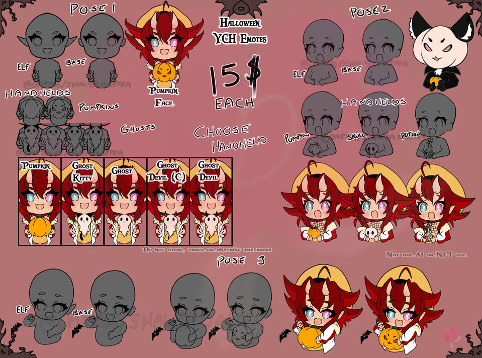 Include Refs of the character.The character doesn't need to be Human or Elf to be converted (As seen by Pumpkat pose)If you want a border around these emotes you can ask for it, or even a simple Background as well
